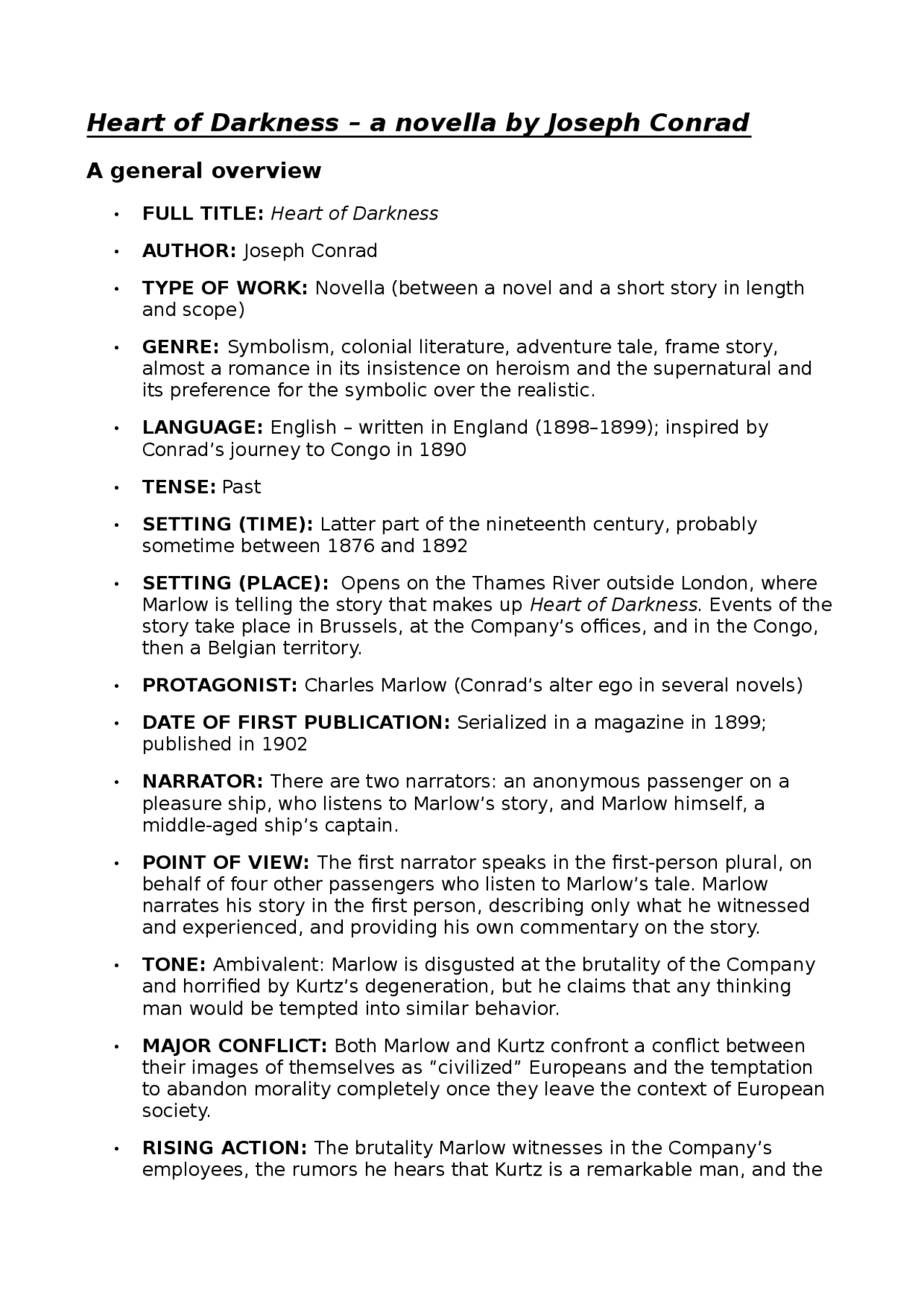 Pdf Heart Of Darkness By Joseph Conrad Study Guide Valentina Ciarlo Academia Edu